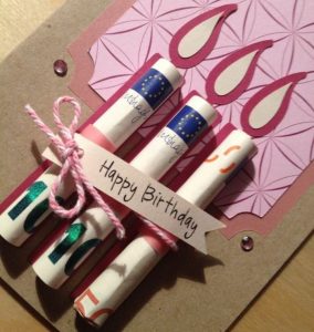 Envolver el dinero de una forma poco habitual y pegarlo en una tarjeta de felicitación es una forma muy original de regalar dinero. Sólo necesitas dinero, un poco de determinación, un papel, un juego de lápices naranja y amarillo y unas tijeras para hacer las llamas de las velas. Curiosite tiene muchas tarjetas de felicitación que seguramente te encantarán. ¡Esto será bastante intrigante!