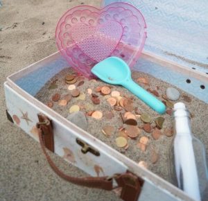 Sólo necesitas una caja decorada de madera, un poco de arena y dinero. Si quieres, puedes añadir una pala de playa como elemento decorativo. Todo lo que tienes que hacer es mezclar arena con dinero y colocarlo dentro de la caja con algunas piedras. Una pala de playa es el complemento decorativo ideal. Puedes añadir una pala de playa como elemento decorativo. En cuanto a las felicitaciones de cumpleaños, puedes meter una pequeña botella de refresco que hayas consumido en exceso en una botella de cristal y poner una nota felicitando el cumpleaños. ¡Es un maravilloso regalo de verano!